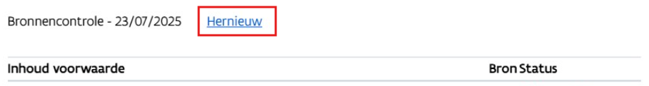Via de knop 'Herniew' kan je de voorwaarden manueel vernieuwen (voorwaarden worden max. 1 keer per dag vernieuwd)
